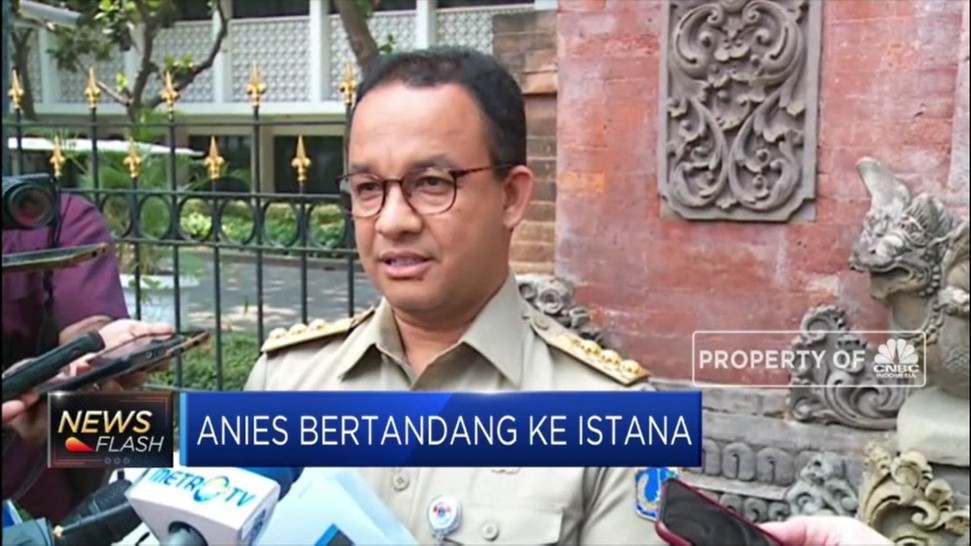 Gubernur DKI Jakarta Anies Baswedan bertemu Presiden Joko Widodo di istana.